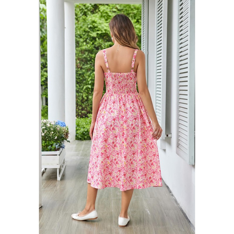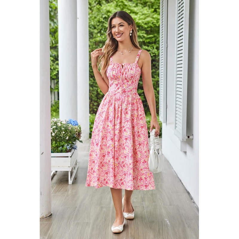 Women's Summer Dress Floral Print Spaghetti Strap Dresses Sundress Pink and Yellow L