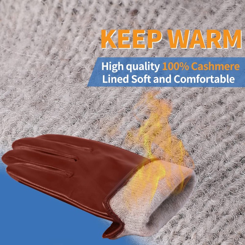 Women's Winter Leather Gloves Nappa Lambskin Touch Screen Gloves Warm Cashmere Lined,Cognac01,L