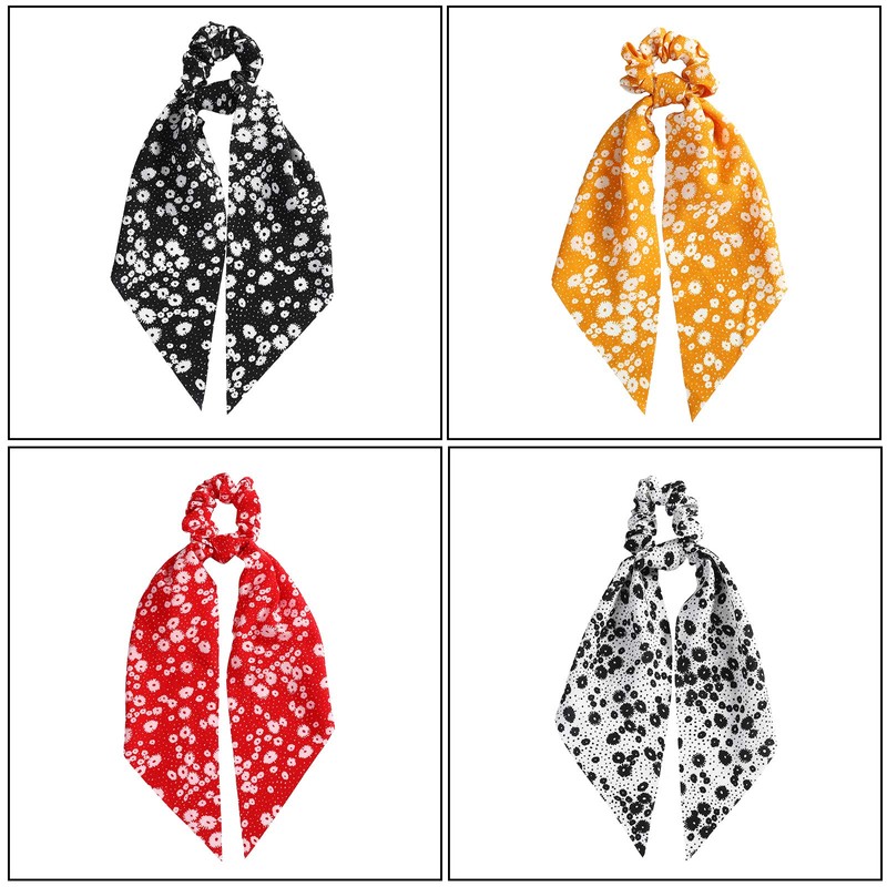 Women Scarfs Head Hair Band - 4 Pcs Silk Scarfs Chiffon Headband Handbag Hand Ribbon Hair Accessories (White/Red/Yellow/Black)