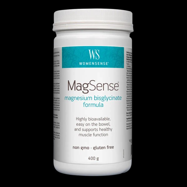 WomenSense MagSense magnesium bisglycinate formula is used to support healthy muscle function. It combines magnesium bisglycinate, a more absorbable form of magnesium that is gentle on digestion, with taurine, L-glutamine, vitamin B6, malic acid, and other muscle-supportive ingredients. This convenient non-GMO powder is available in delicious berry and original flavours.