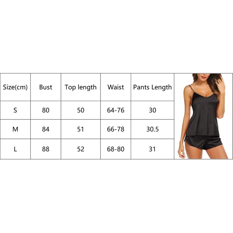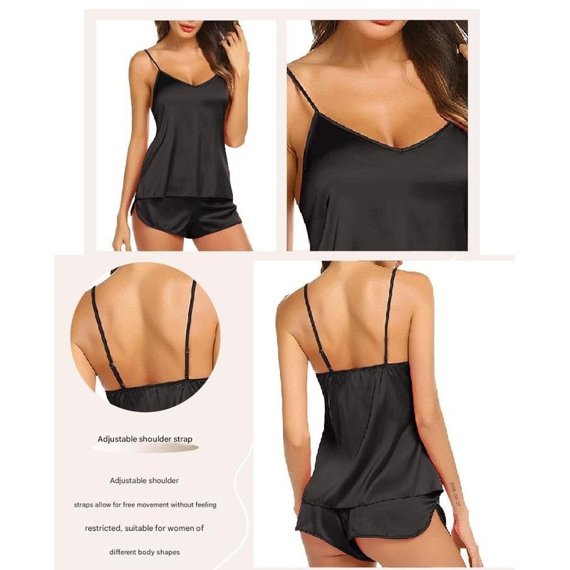 Women Silk Camisole Pajamas Shorts Set (AU, Alpha, Medium, Regular, Regular, Black)