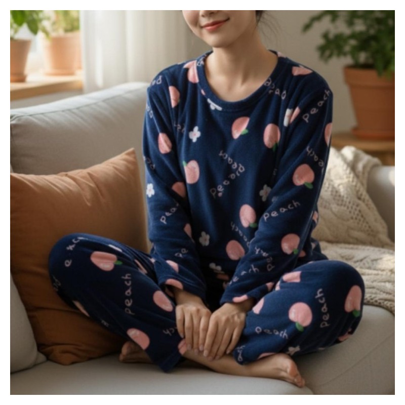 Women Winter Compression Microfiber Peach Pajamas Pajamas Homewear Set XL/Peach Blue