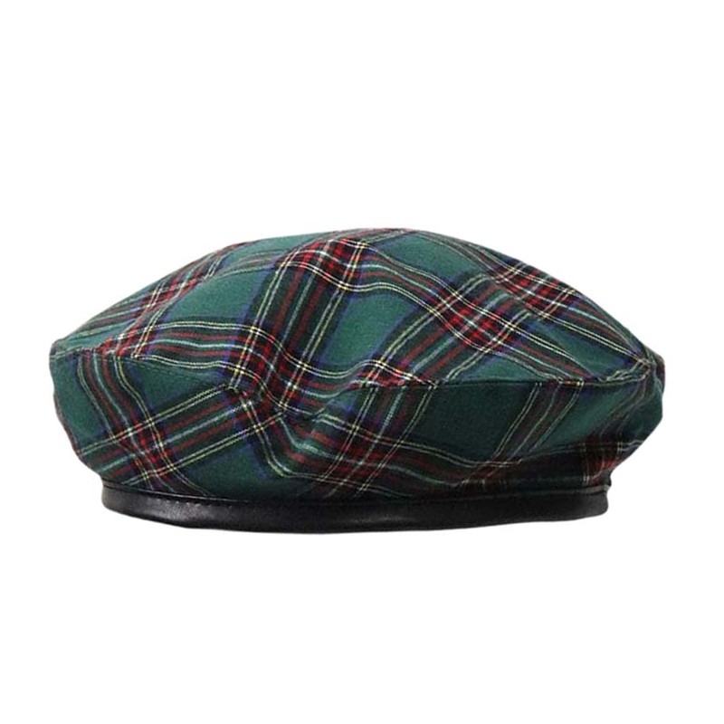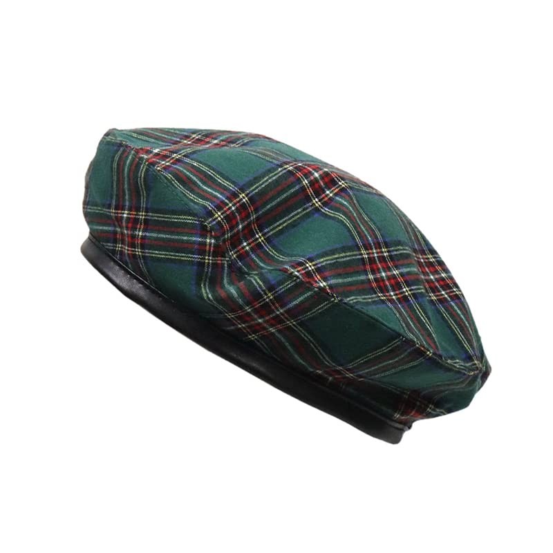 Women Winter Plaid French Beret Hat Tartan Check Artist Painter Hats Beanie Cap, Vivid Green, One Size