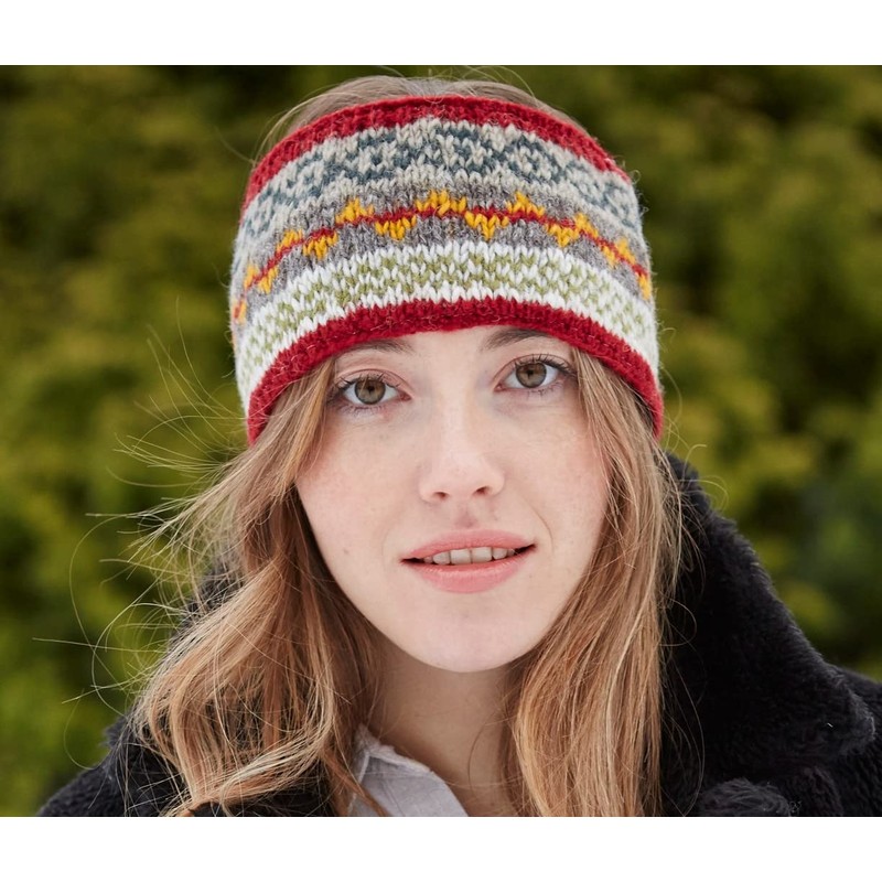 Women Wool Ear Warmer Headband Fleece Lined Handknitted Fairisle Multicoloured One-Size Handmade Pachamama Fair Trade