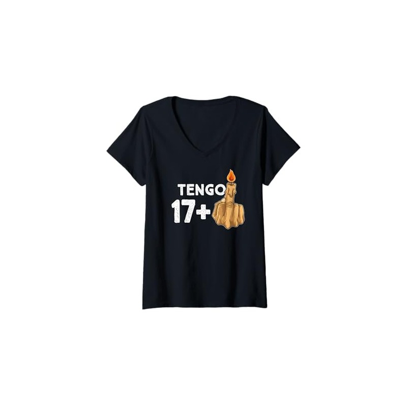 Womens 17+1 Half Finger 18th Birthday Candle V-Neck T-Shirt