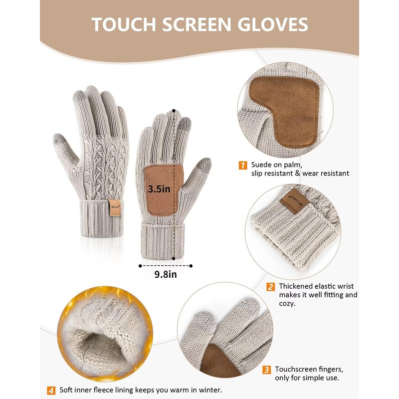 - ♥Non-Slip and Touchscreen Gloves♥: The winter gloves are desgnied with touchscreen material on the thumb and index finger, allowing you to operate electronic devices without taking off your gloves. The palms are designed with artificial suede leather, which makes it more non-slip and durable. With soft napping the inner lining, the gloves are extremely comfortable and warm considering they aren’t bulky!