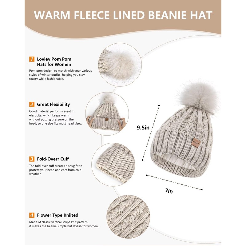 - ♥Cozy & Warm Fleece Lined Beanie Hat♥: This winter hat in the set features a fluffy Pom Pom design that is larger than regular pom poms, adding a stylish and youthful touch. Lined with thick soft fleece, it provides comfort and warmth without causing any itchiness. The beanie offers not only fashionable and cute look but also excellent protection in the coldest winter days.