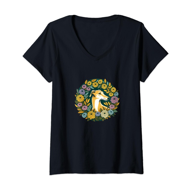 Womens Beautiful Fawn Greyhound Illustration V-Neck T-Shirt