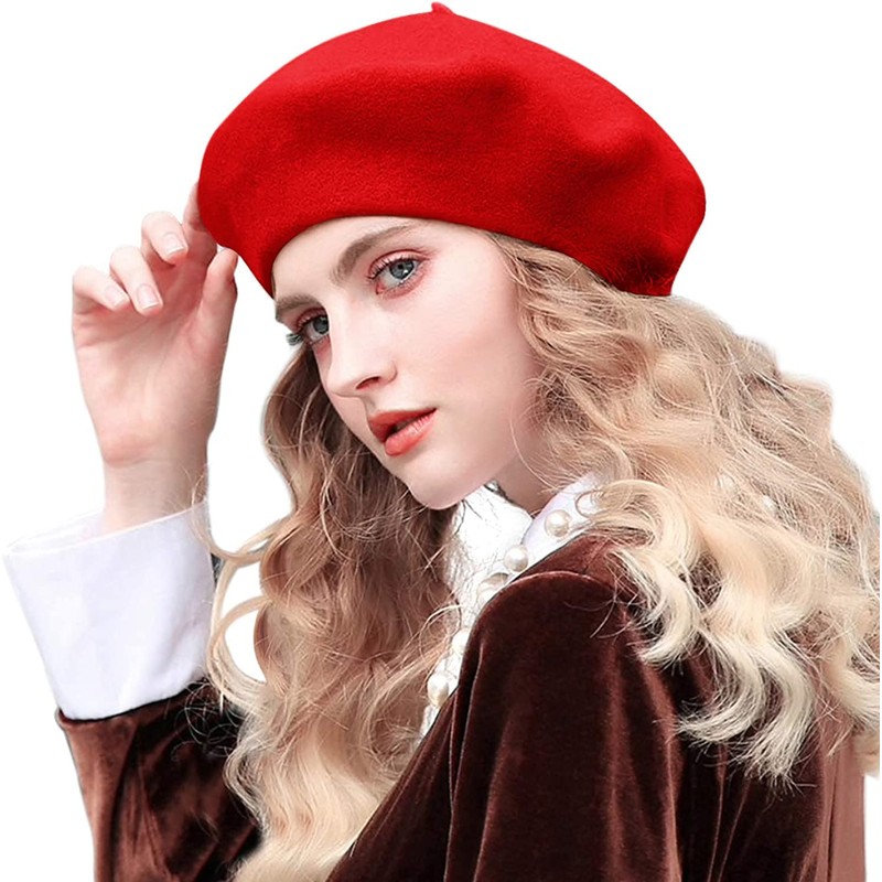 Womens Beret French Classic Beanie Hat Wool Beret Solid Color