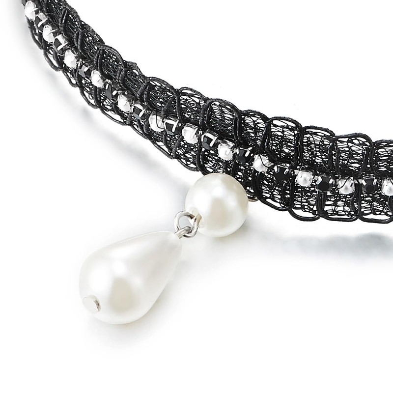 - Womens Black Rhinestones and Pearls Choker Necklace with Charm Pendant Of Teardrop White Pearl(CA)