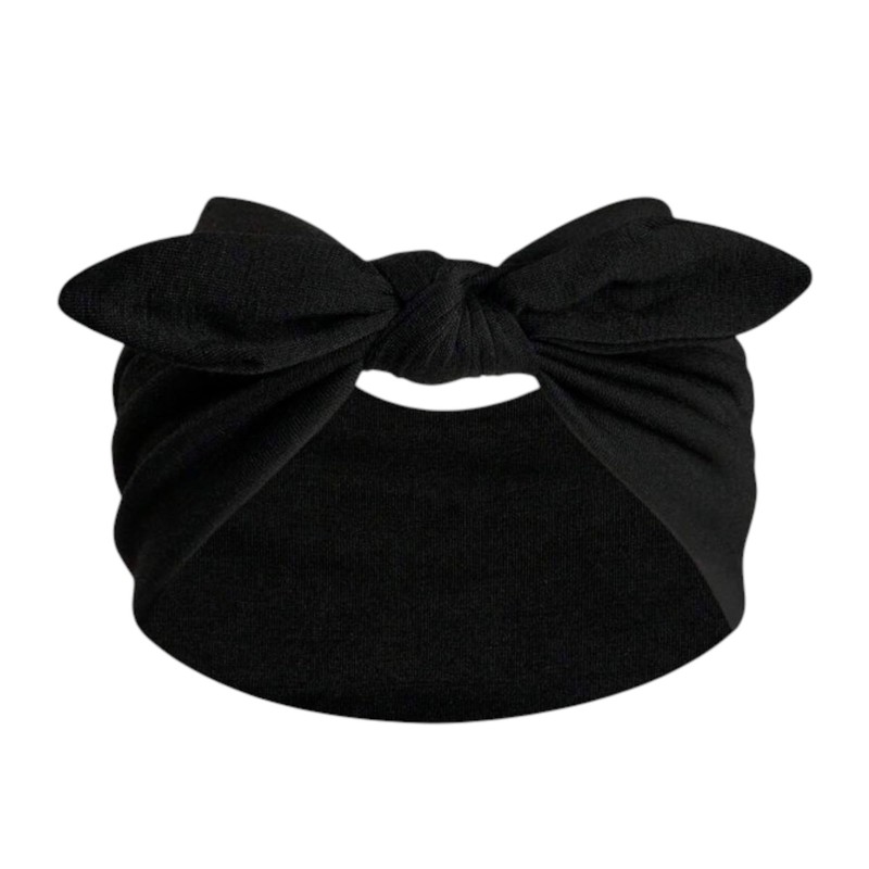 Womens Bow Headband, Elastic Hair Wrap, Wide Knotted Style (Black, One Size)