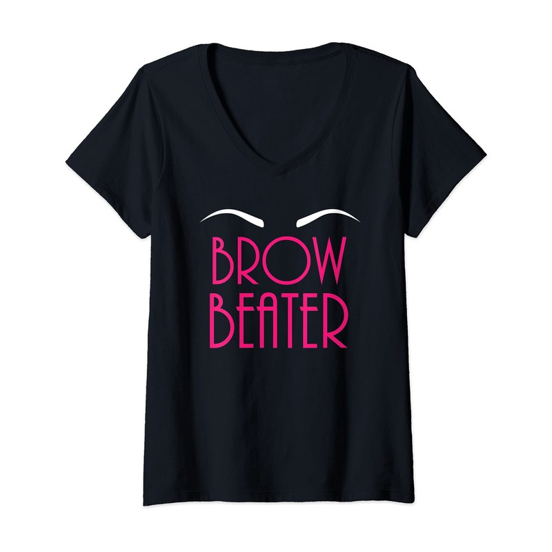 Womens Brow Beater Funny Brow Artist Esthetician V-Neck T-Shirt