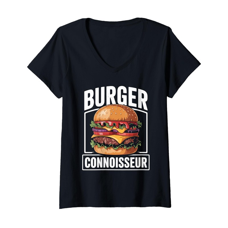 Womens Burger Connoisseur Juicy Cheese Delight V-Neck T-Shirt