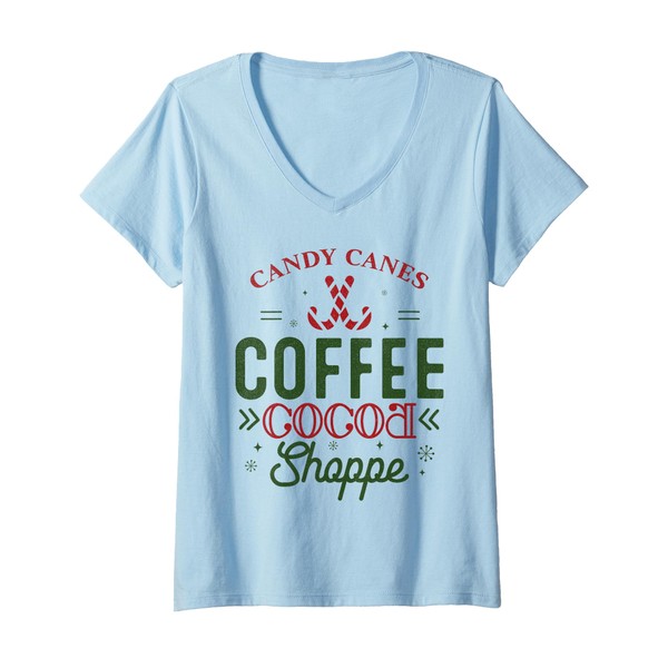Womens Candy Canes Coffee Cocoa Shoppe Funny Christmas V-Neck T-Shirt