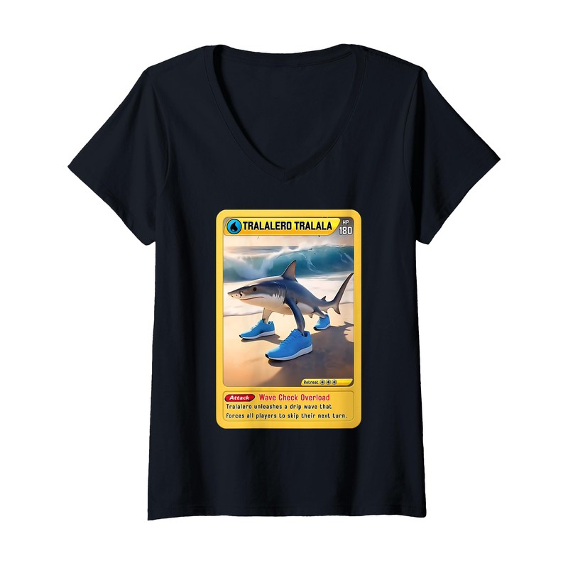 Womens Card Italian Brainrot Tralalero Tralala Shark Meme Boys Girl V-Neck T-Shirt