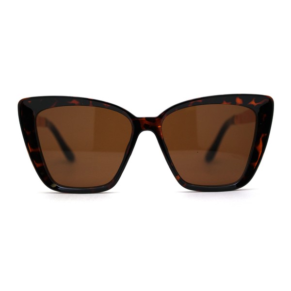 Womens Chic Mod Oversize Cat Eye Diva Metal Arm Sunglasses Tortoise Solid Brown