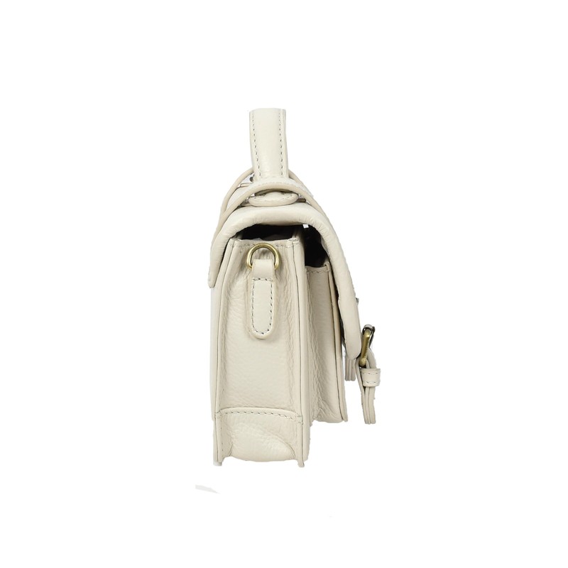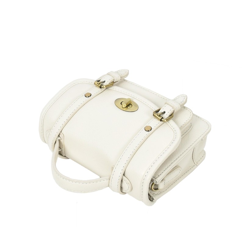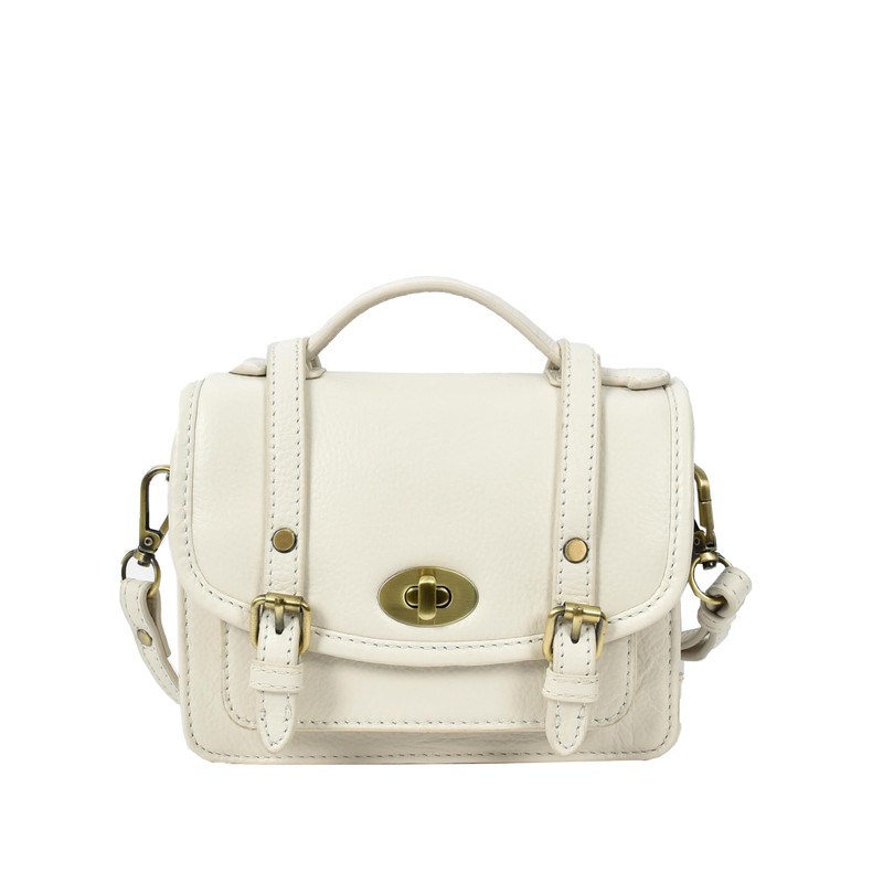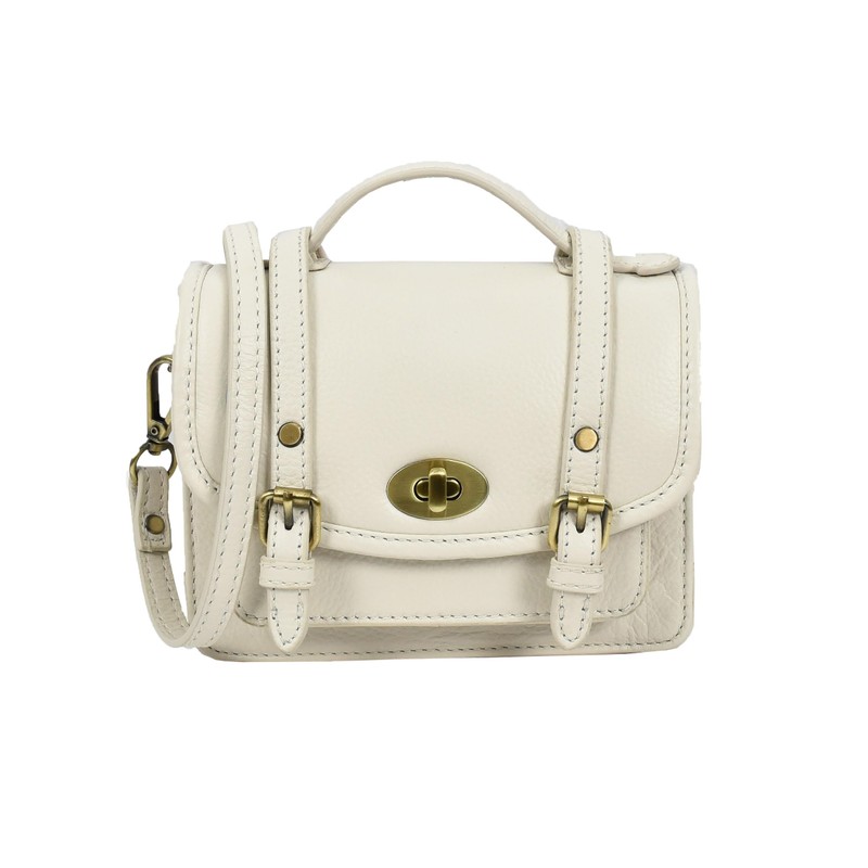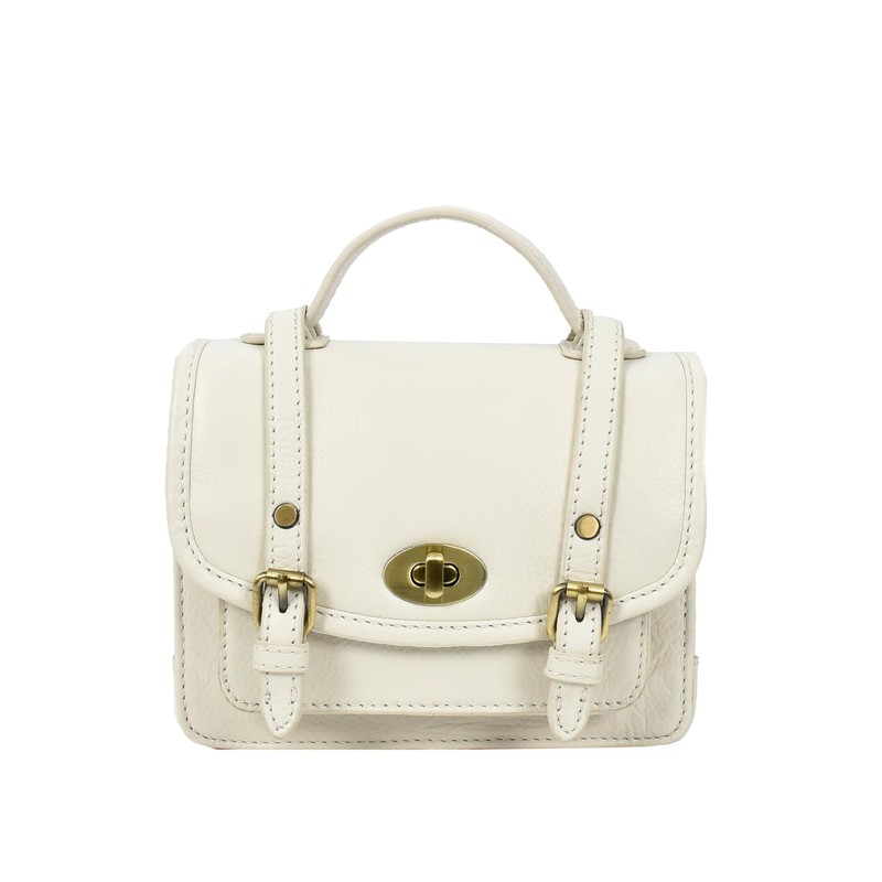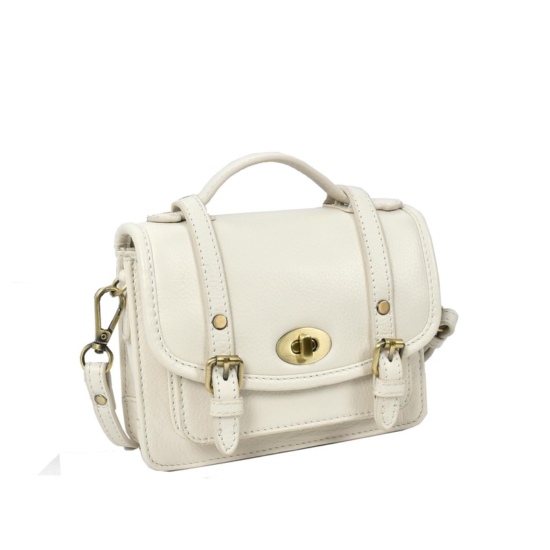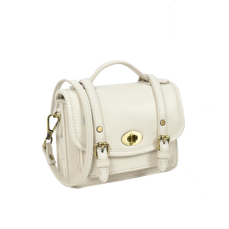 Womens Classic Mini Satchel Handbag Leather Crossbody Purse with Turn-Lock Closure Multiple Colours Option pipin (Off White)