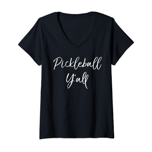 Womens Cute Pickle Ball Quote Gift Southern Funny Pickleball Y'all V-Neck T-Shirt