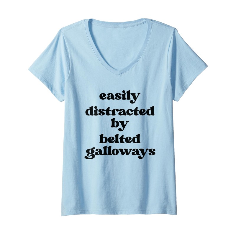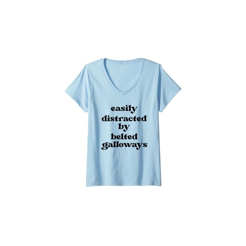 Womens Easily Distracted By A Cow - Breeder Belted Galloway Cattle V-Neck T-Shirt