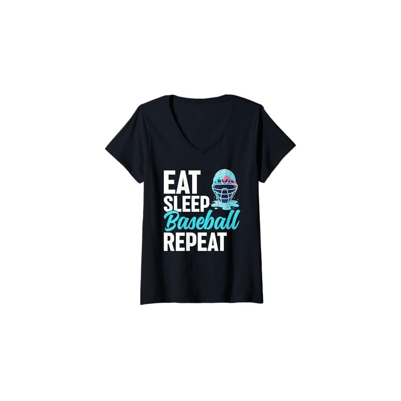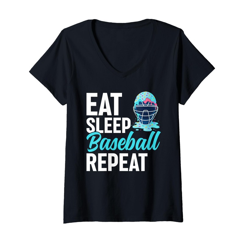 Womens Eat Sleep Baseball Repeat Ice Cream Dripping Drip Baseball V-Neck T-Shirt