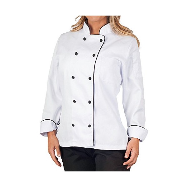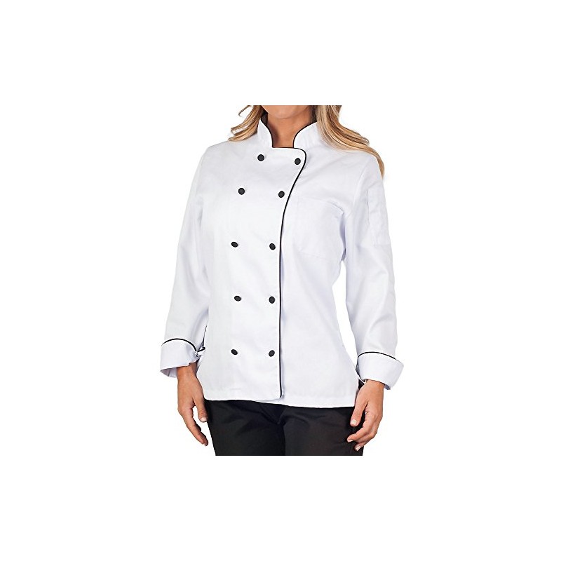 Womens Executive Chef Coat with Black Piping, S