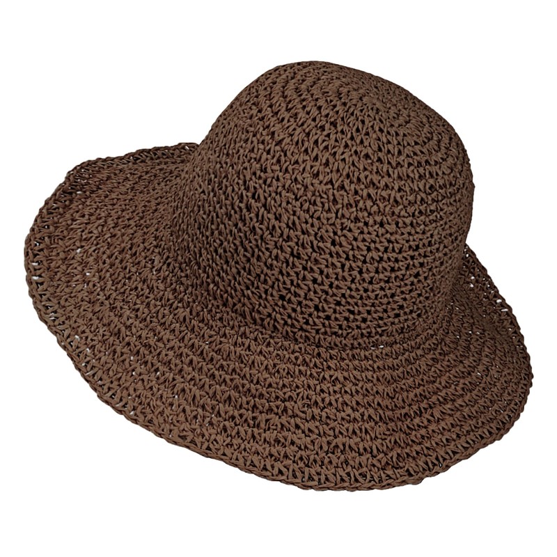 Womens Floppy Straw Sun Hat Foldable Packable Wide Brim Summer Beach Hat Crochet Bucket Hat (US, Alpha, One Size, Coffee)