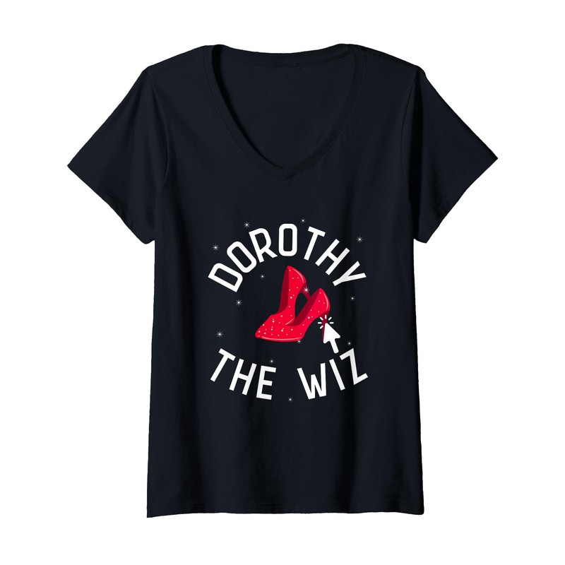 Womens Fun Dorothy Red Heels Shoes Mouse Pointer Clicker V-Neck T-Shirt