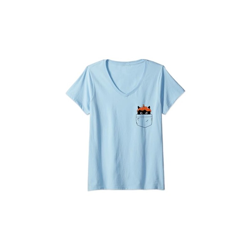 Womens Funny Cat Pumpkin Hat in Pocket Halloween Cats lover kids V-Neck T-Shirt