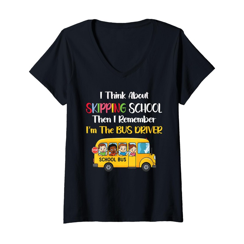 Womens Funny School Bus Driver Gift Back To School Skipping School V-Neck T-Shirt