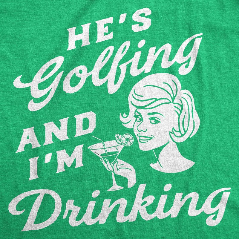 Womens Funny T Shirts Hes Golfing and Im Drinking Sarcastic Graphic Novelty Tee for Ladies Funny T Shirts Drinking Tops for Women Cool Golf Top Women's Green - M
