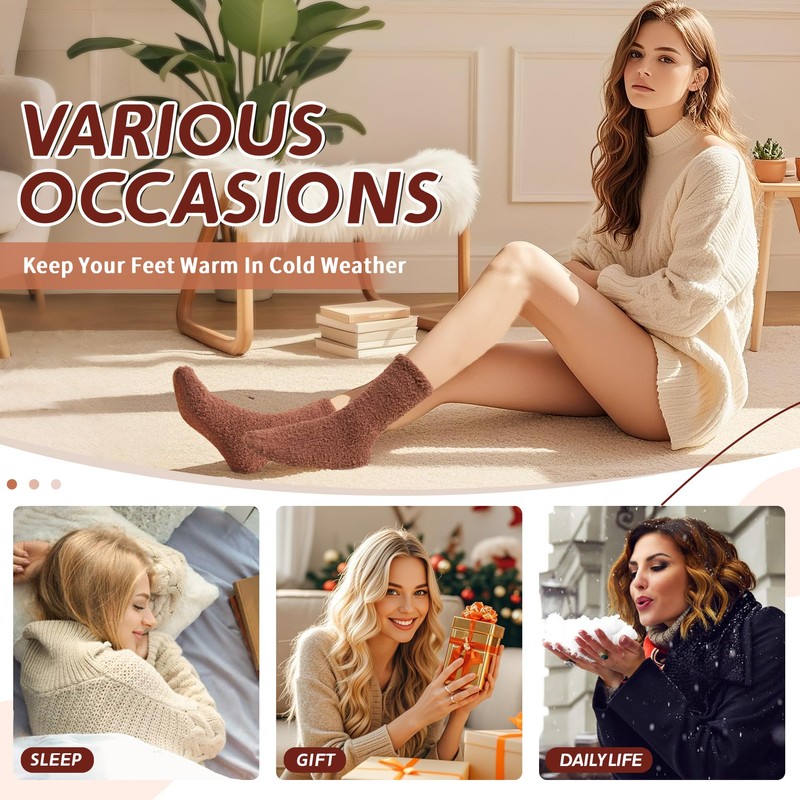 • PERFECT FOR MANY OCCASIONS- The winter fuzzy socks are designed to fit Women with shoe size between 5-10. They are stretchy but not loose or sag as cheap socks out there. Our indoor socks Applicable to Many Occasions, Perfect for everyday wear, work, sleeping, boot, house, indoor, Suitable for Spring, fall, winter season or in any cold weather or snow. Super thickness, very suitable for wearing during sleep, keeping your feet warm.