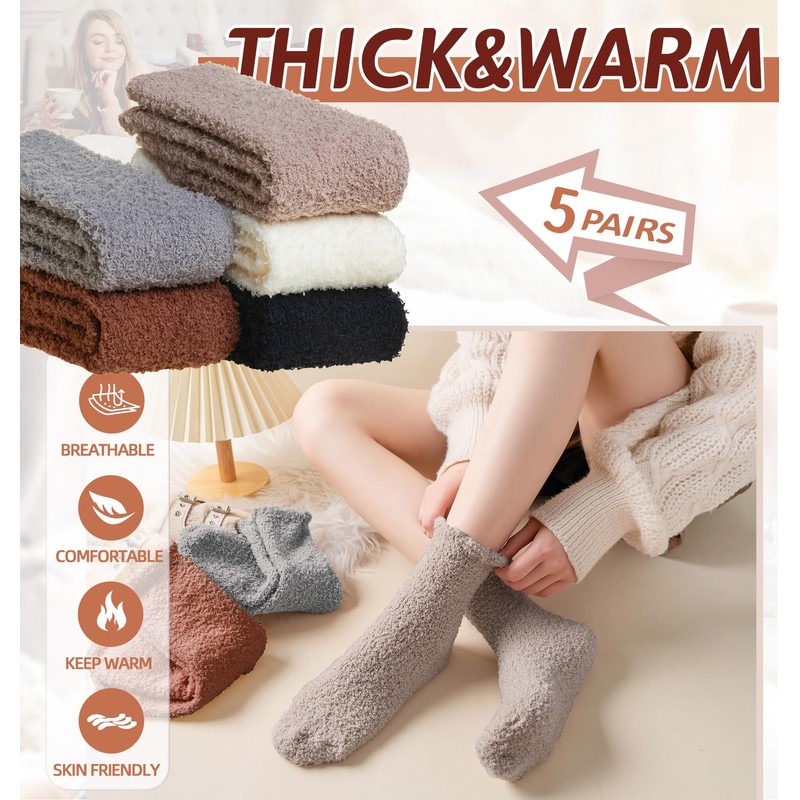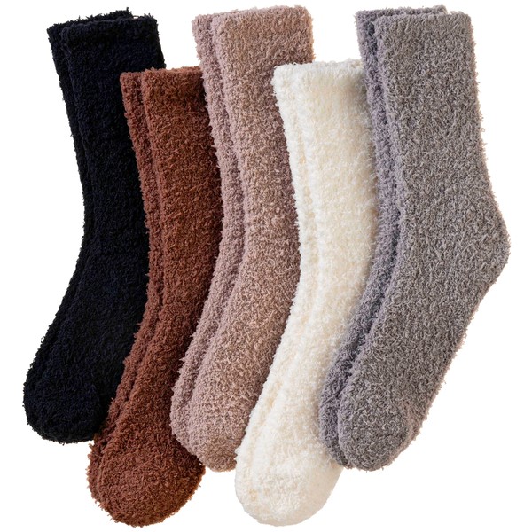 Womens Fuzzy Socks Warm Fluffy Winter Cozy Thick Plush Microfiber Slipper Soft Home Sleeping Socks 5 Pairs(Solid Color-04)