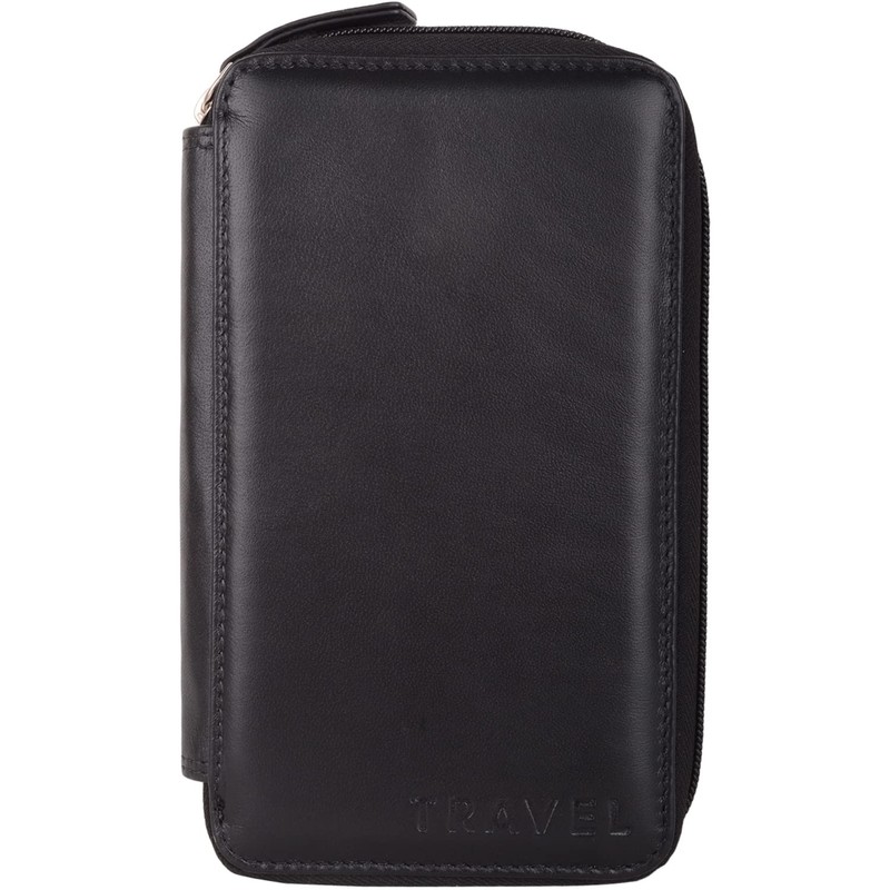 Womens Genuine Soft Leather RFID Travel Passport Document Holder Wallet - Black