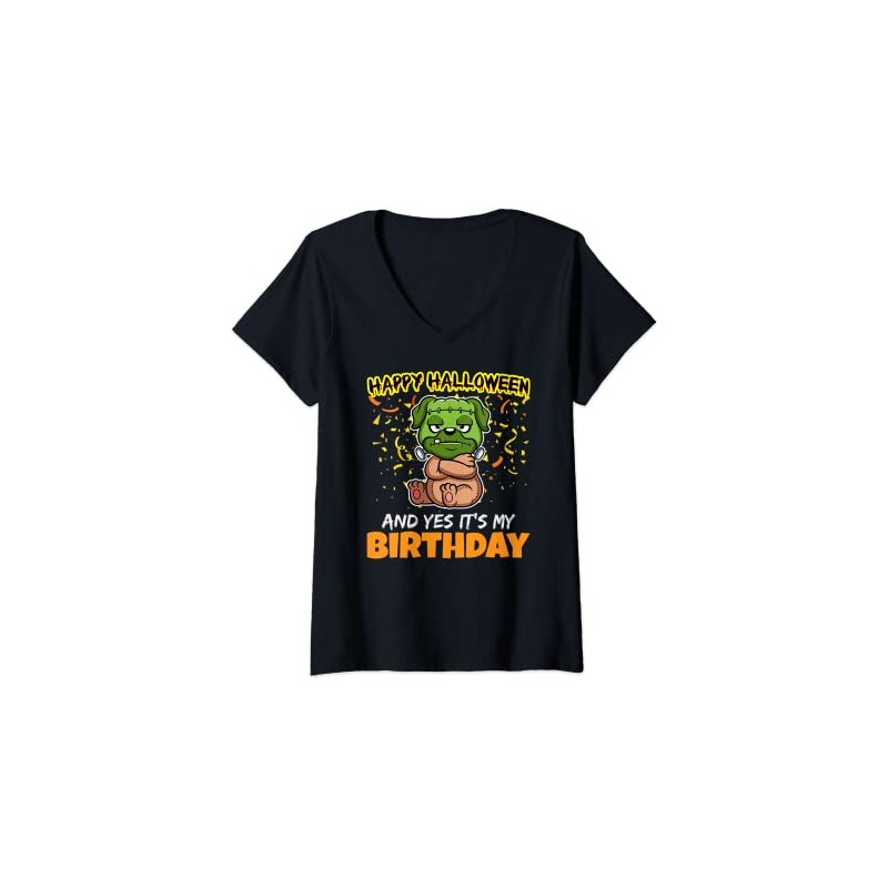 Womens Happy Halloween And Yes It's My Birthday B-Day Trick R Treat V-Neck T-...