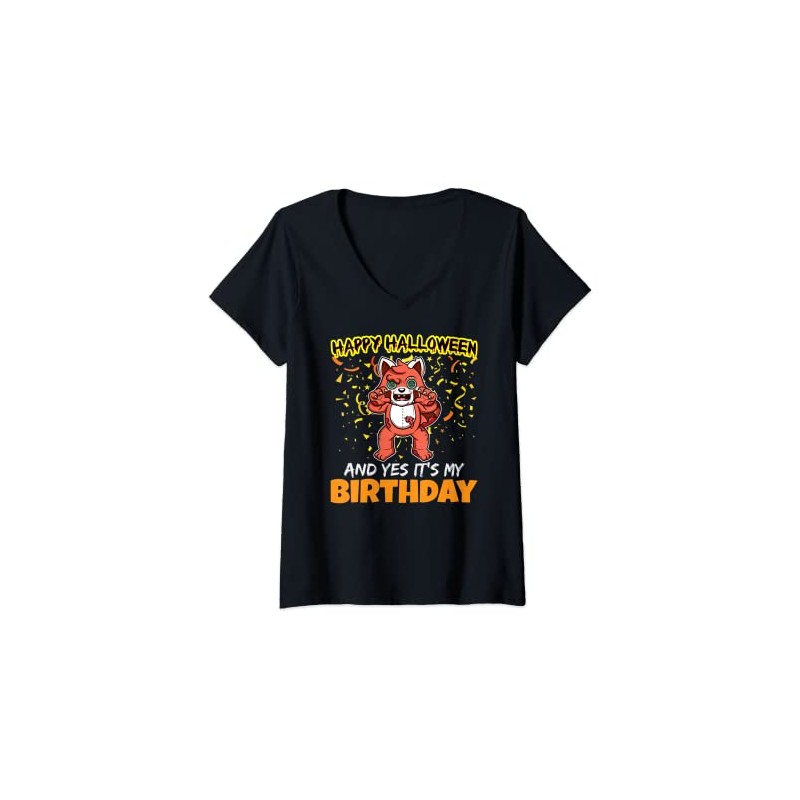 Womens Happy Halloween And Yes It's My Birthday B-Day Trick R Treat V-Neck T-Shirt