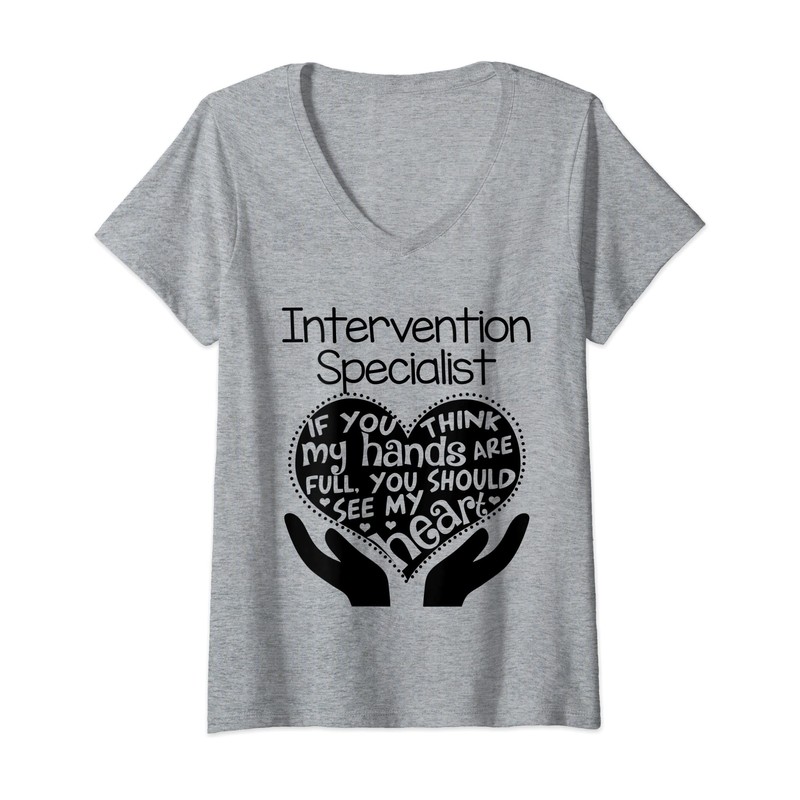Womens Intervention Specialist T shirt Heart Hands School Gift V-Neck T-Shirt