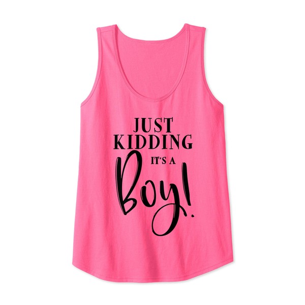 Womens Just Kidding It's A Boy Funny Gender Reveal Surprise Pink Tank Top