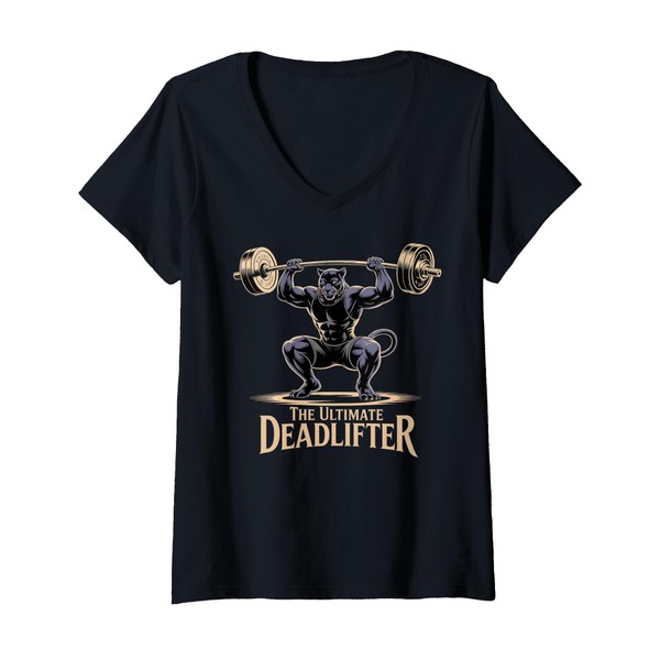 Womens Kid Black Panther Deadlifter Funny Workout Gym Black Panther V-Neck T-Shirt