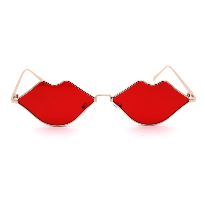 Womens Kissing Lip Shape Metal Rim Hippie Sunglasses Gold Red
