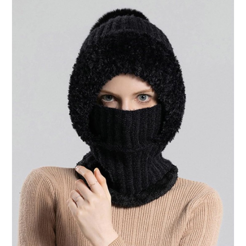 Womens Knit Beanie Hat Fleece Lined Winter Scarf Mask Set Snow Caps Plush Earmuff Skull Hats with Pompom