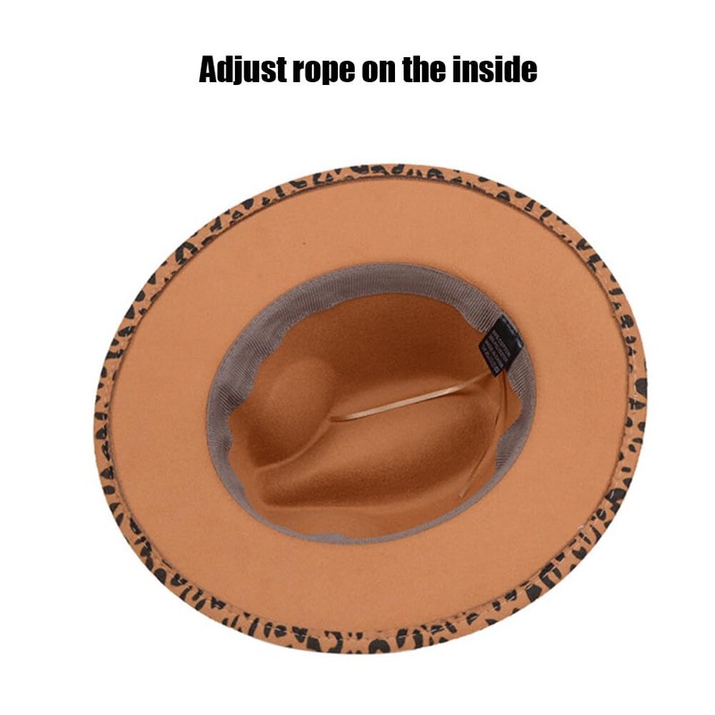 Womens Leopard Printed Wide Brim Fedora Hat Classic Panama Hat Jazz Cap with Belt Buckle