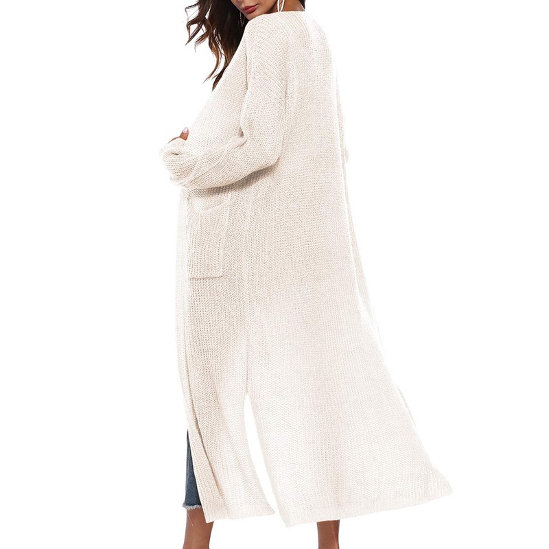 - Feature: Casual Long Sleeve, Ribbed Knit, Dropped Shoulder, Side Slit, Open Front, Lightweight, Flowy ardigan, Above ankle length knit long cardigan sweater.