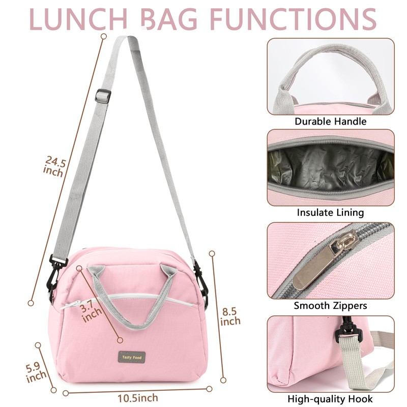 - EXQUISITE CRAFTSMANSHIP: The tough & smooth hand-held rope of this lunch bags for women for work is stitched with high-pressure machine sewing technology, making it durable and not easy to tear. With a detachable shoulder strap, it can be carried in different ways, and the strap can be freely adjusted according to height.