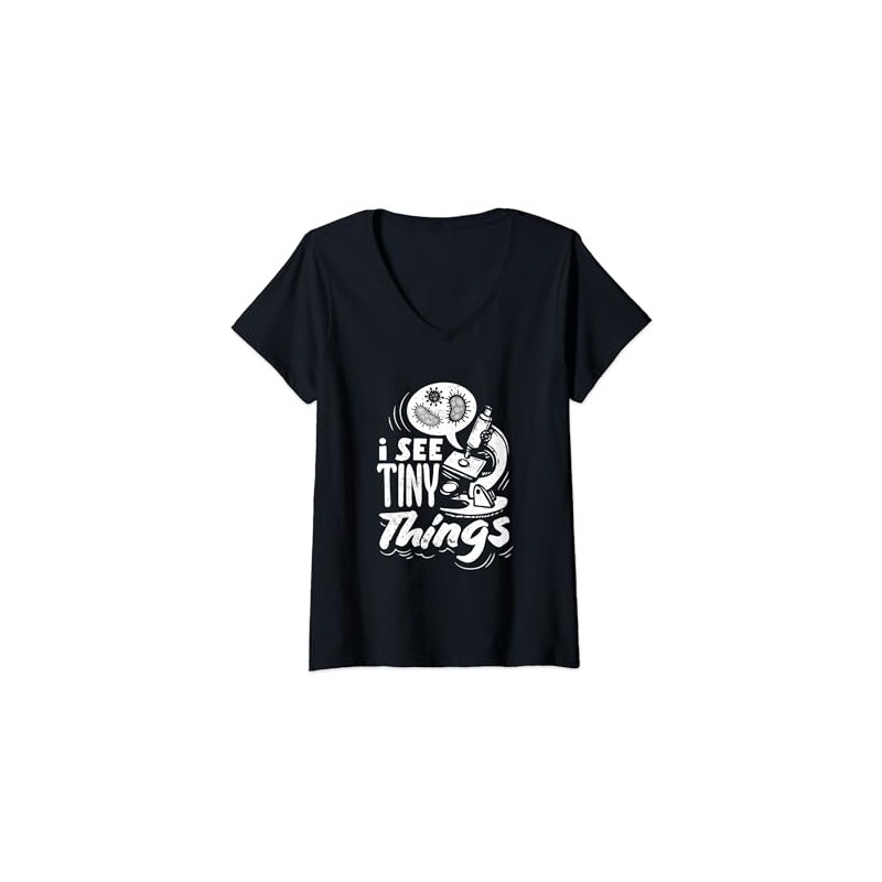 Womens Microscopy I See Tiny Things Funny Microbiologist V-Neck T-Shirt