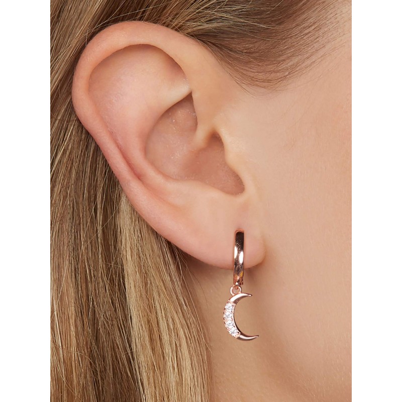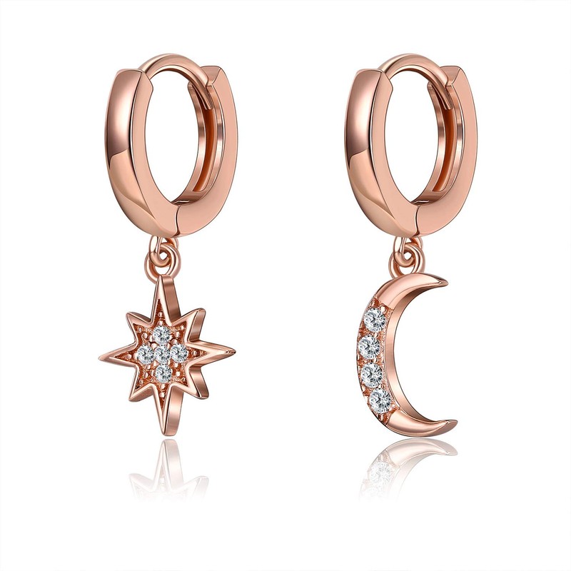 Womens Moon Star Dangle Small Hoop Cubic Zirconia Earrings Girls Sterling Silver Crystal Asymmetrical Snowflake Crescent Drop Mini Cartilage Clip Jewelry Delicate Birthday Gifts (Rose Gold)