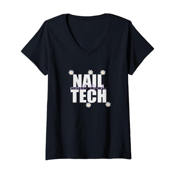 Womens Nail Tech Flower Nail Tech V-Neck T-Shirt