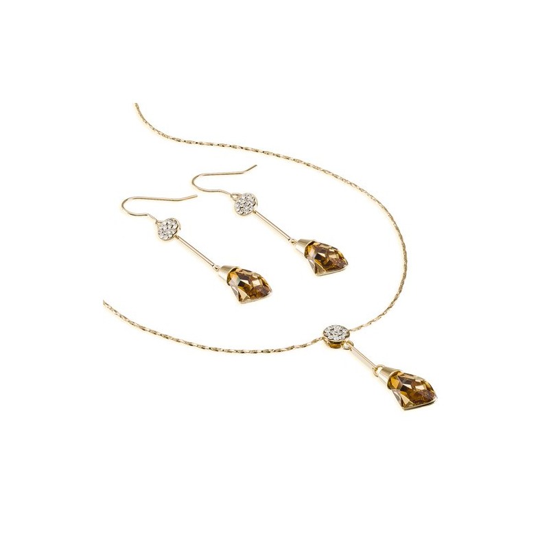 Womens Necklace & Earring Set, Swiss Crystal Elements. Timeless Gift Idea for Anniversary & Christmas Under £5. Clear, Topaz & Amethyst, 14K Gold & Silver Rhodium, Janeo