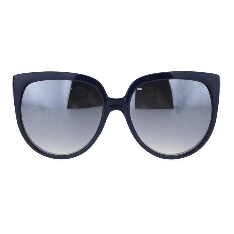 Womens Oversized Boyfriend Style Plastic Retro Horn Sunglasses Navy Silver Mi...