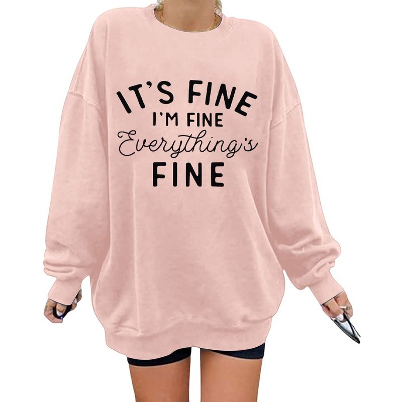 Womens Oversized Sweatshirt Its Fine Im Fine Everything is Fine Sweatshirt Casual Crewneck Long Sleeve Pullover Tops Pink