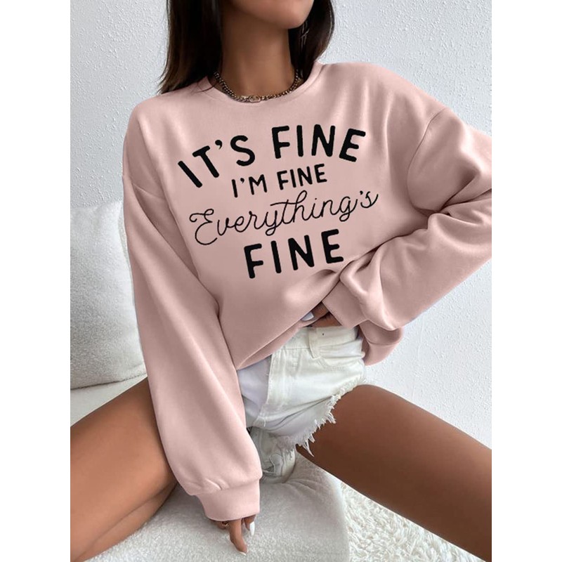 Women's Oversized Crewneck Sweatshirt Its Fine Im Fine Everything is Fine Sweatshirt Casual Long Sleeve Loose Pullover Tops